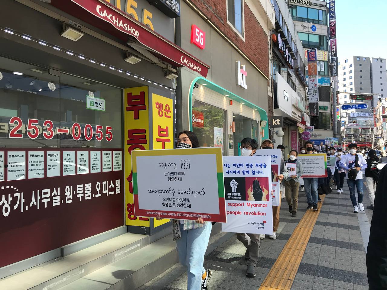 매주 일요일 1시부터 4시 수원역 7번출구 문화광장에서 미얀마 분들과 미얀마의 민주주의를 바라는 사람들이 함께 연대하며 선전전을 합니다.