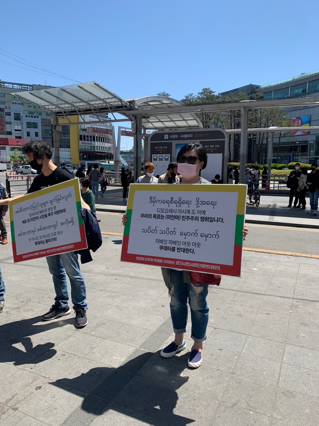 지난 일요일(5월9일) 수원역에서 진행된 미얀마 민주주의를 위한 선전전에 다녀왔습니다.