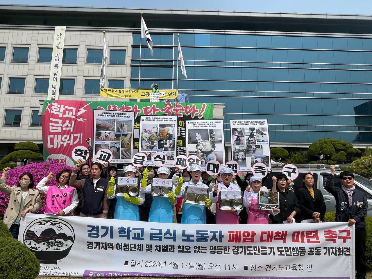 우리는 경기 학교 급식실 폐암 대책이 마련되고 실행될 때까지, 그리고 급식노동자들의 안전과 건강한 학교급식의 미래를 위해 끝까지 함께 할 것이다.