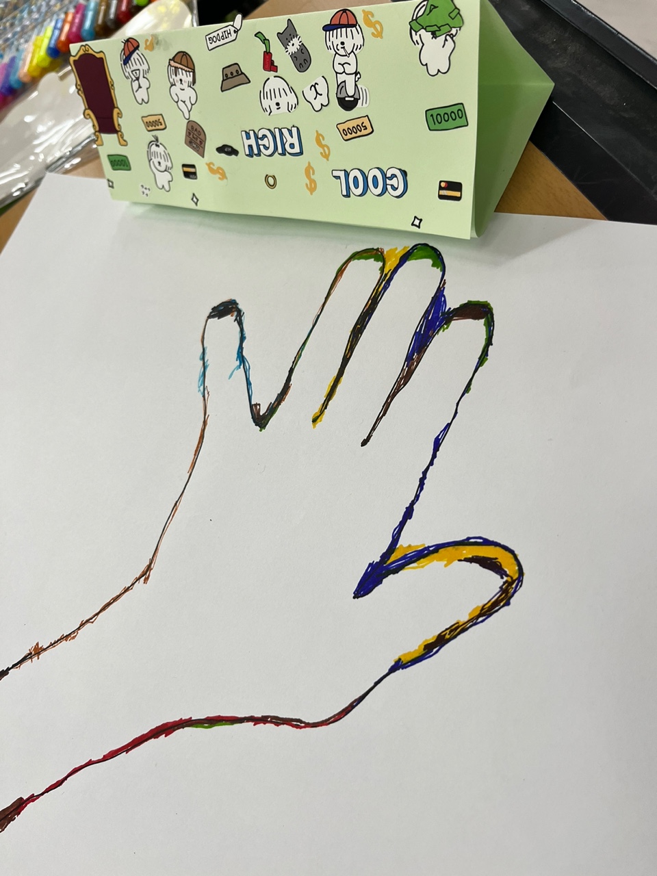 몸으로 하는 활동과 그림 그리기 등 다양한 활동을 통해 몸과 마음을 여는 시간을 가졌습니다. 미리 입수한 참여자들이 좋아하는 노래를 틀면 누군가는 따라 부르고, 춤을 좋아하는 참여자에게 마카레나를 요청하여 함께 춰보는 시간을 갖기도 했습니다. 중간에 화장실이 가고싶은 이용인이 바지를 내리려고 하자 지원사가 화장실로 안내했습니다. 과잉행동을 보이는 이용인의 양 옆에는 지원사 두 분이 앉아 계셨습니다. 두 분 모두 이용인과 함께 그림을 그리며 이용인의 팔이 다른 사람에게 뻗치는 0.5초의 시간을 조율하는 모습이 3인 1조 같았습니다.