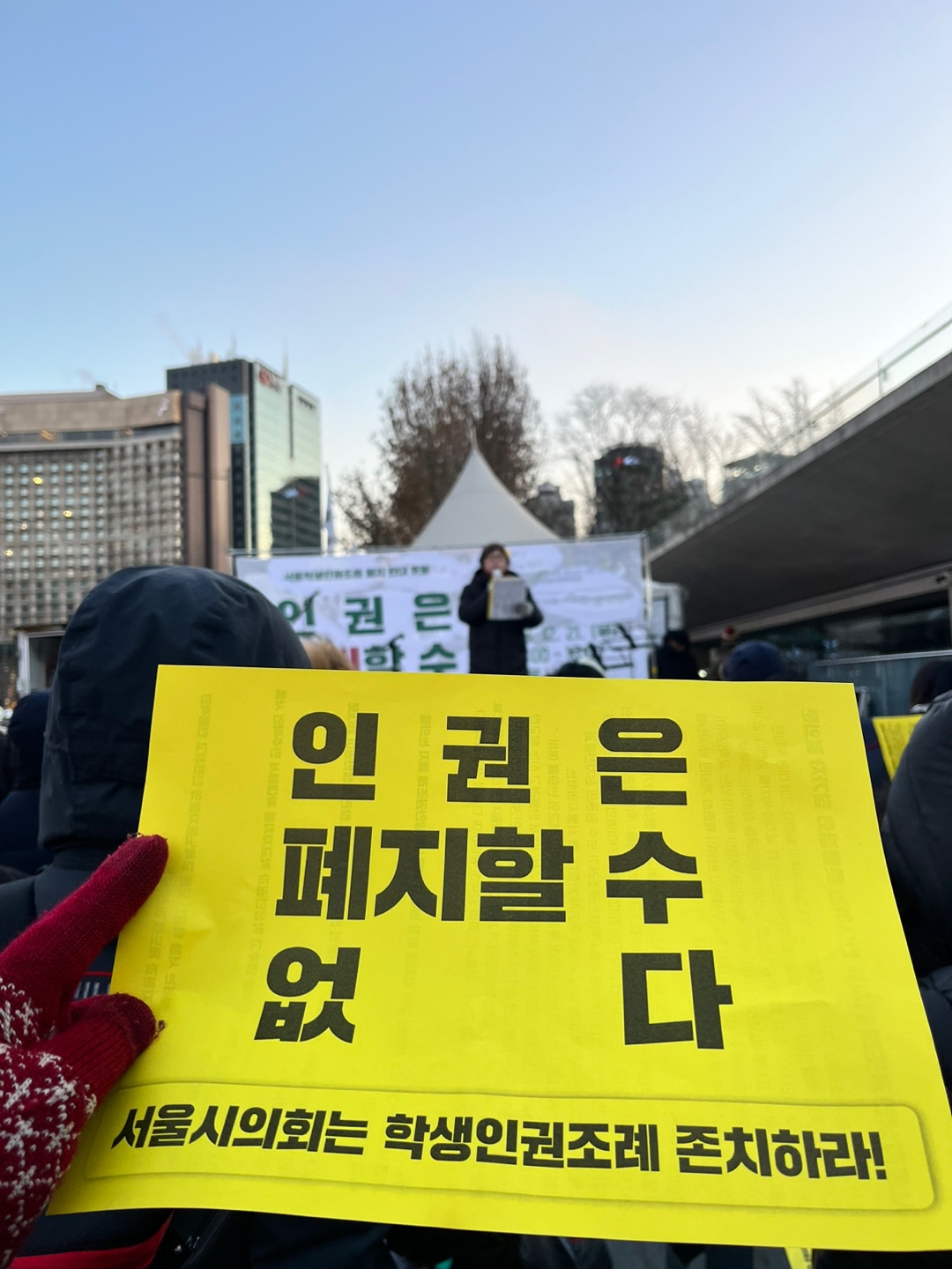 학생인권조례폐지 반대 촛불집회에 참여했습니다. 발가락이 얼어붙을거 같은 추위에도 많은 사람들이 함께 했습니다. 고등학생부터, 대학생, 교사, 활동가,학부모 그리고 전교육감까지 다양한 층위의 사람들이 학생인권조례 존치발언을 했습니다.