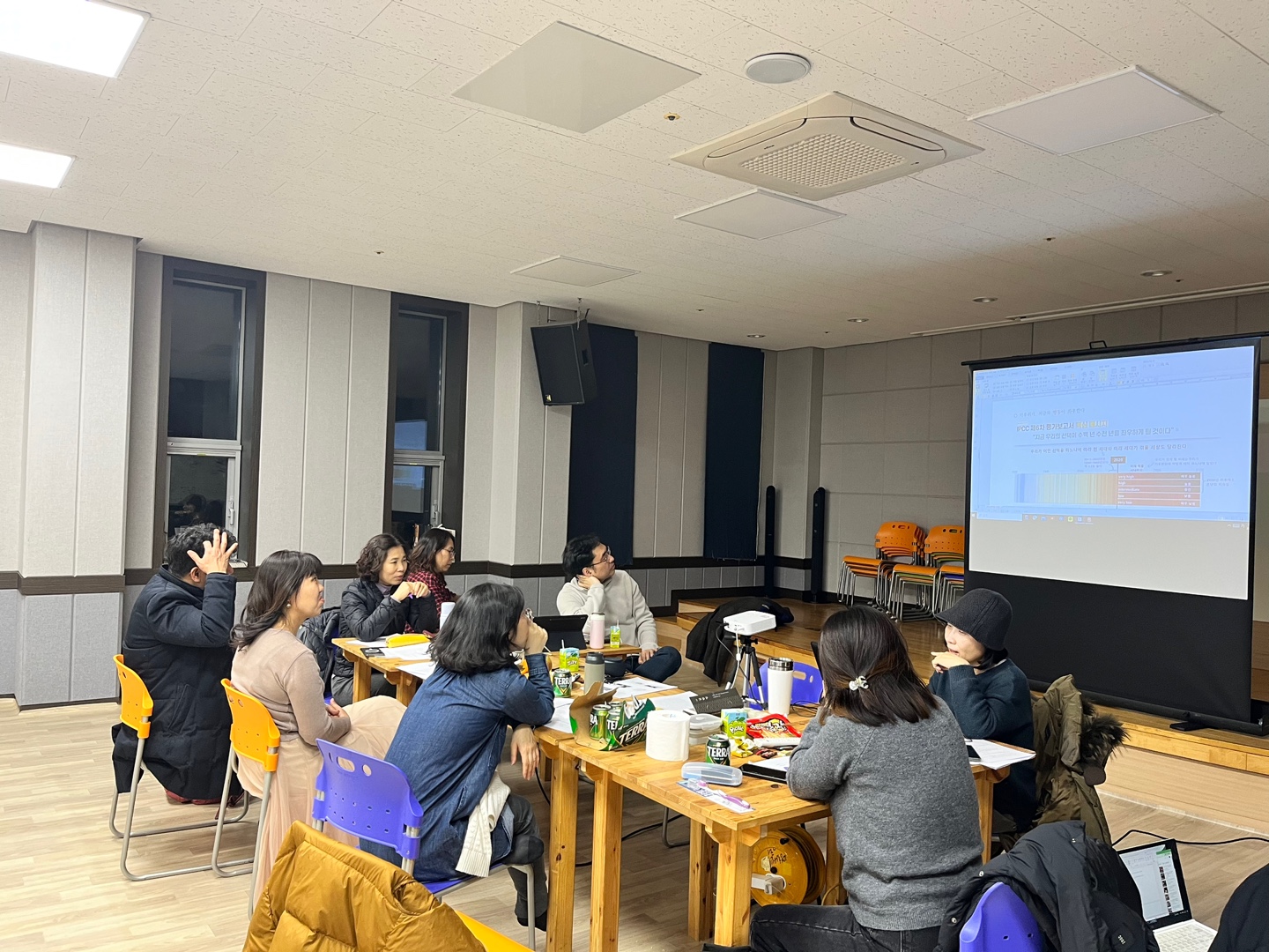 이번 워크샵에서는 여러 주제 중 ‘기후정의와 인권’, ‘자유권리책임’, ‘차별과 혐오’ 3개의 주제로 교안검토를 했습니다. 그리고 나서 늦은 뒤풀이를 했는데요. 우리 활동회원 분들이 술을 정말 안드시더라구요. 그나마 잘 마시는 세훈마저 마실 수 없는 상황이라 제가 좀 안타까웠습니다.