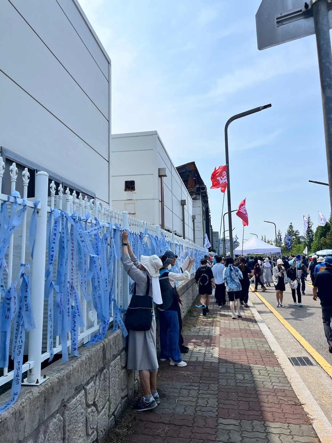 시청에 도착하니 얼굴과 팔이 화끈거립니다. 이제는 기후위기 때문에 집회의 자유도 제대로 누릴 수 없겠구나라는 감각을 몸으로 확인합니다. 그렇게 더운데도 사람들은 모자와 양산과 얼음물로 무더위를 버티며 꿋꿋하게 걷습니다.