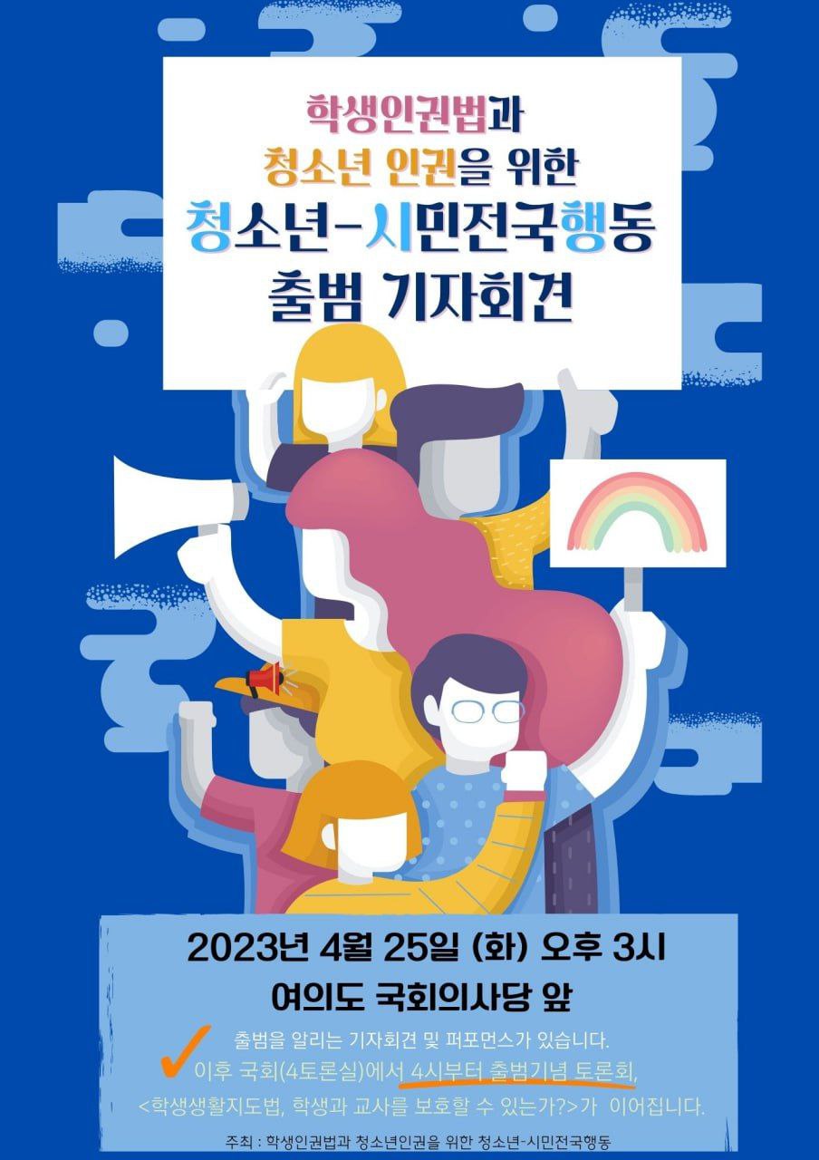 활동 소식 [기자회견]학생인권법과 청소년인권을 위한 기자회견에 다녀왔습니다. 인권교육온다 2023. 4. 26. 10:07 https://www.ohmynews.com/NWS_Web/View/at_pg.aspx?CNTN_CD=A0002922133 학생인권법·청소년인권 위한 '청소년-시민전국행동' 출범 2017년 9월 출범한 촛불청소년인권법제정연대 조직 확대해 재출범 www.ohmynews.com