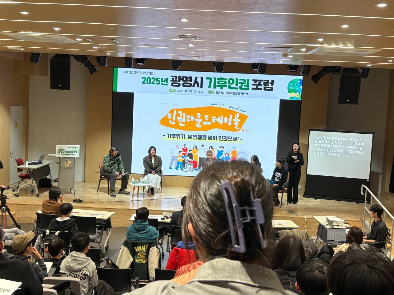 광명시에서는 기후인권포럼을 진행했습니다. 채효정 기후정의동맹 활동가가 기조강연을 하고 청소년·장애인·노동자 등 기후약자 당사자들이 자신의 경험을 이야기하는 시간을 가졌습니다.